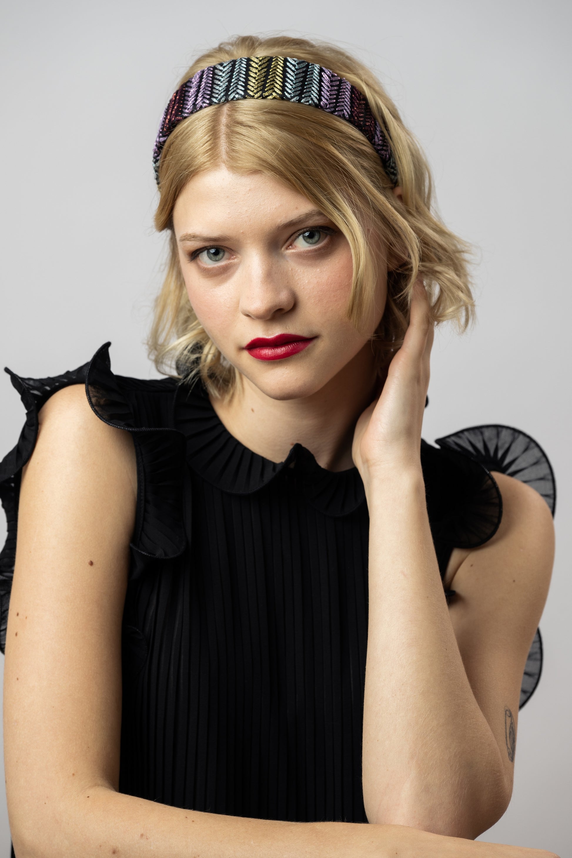 The Andolla headband is handcrafted in Switzerland with an exquisite shimmering Swiss fabric. Its slim design ensures a comfortable fit for extended wear. Versatility is key with the Andolla headband. Its array of colors allows for easy pairing with a variety of outfit choices. Whether you're dressing up for a special occasion or adding a stylish touch to your everyday look, this headband effortlessly complements your style. No matter the season, the Andolla headband is a perfect choice. During warmer months, it beautifully accentuates a flowing dress, while in colder seasons, it adds a touch of sophistication when paired with a cozy coat.